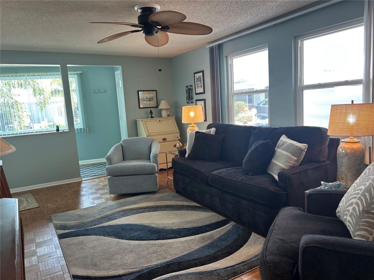 Very unique & well cared for home offering festive Floridian colors throughout! Most of the home is drywalled walls! Indoor laundry room! 2 mini splits heat & cool the home. Located out of the flood (Zone X)zone & backs up to the fence with view. Several updates in recent years include; flooring & windows within last 3 years. Roof had repairs after 2025 hurricanes. Vinyl siding painted summer 2024. All furnishings in the home now stays with the home! Tri-Par Estates is a 55+ community in which you own your home and the land. A park fee of $1,648.00 a year is part of the property taxes paid once a year, includes Frontier internet, cable also trash. There is a large pool, hot tub, mini golf, laundry facilities, fitness room, clubhouse, and many activities to enjoy. Just minutes to the airport and many other like necessities nearby like hospitals, shopping, restaurants and more. Please do not disturb resident. Airplanes & jets do fly over Tri Par Estates - Navigation Easement. Tri Par is a state park & recreation development.
